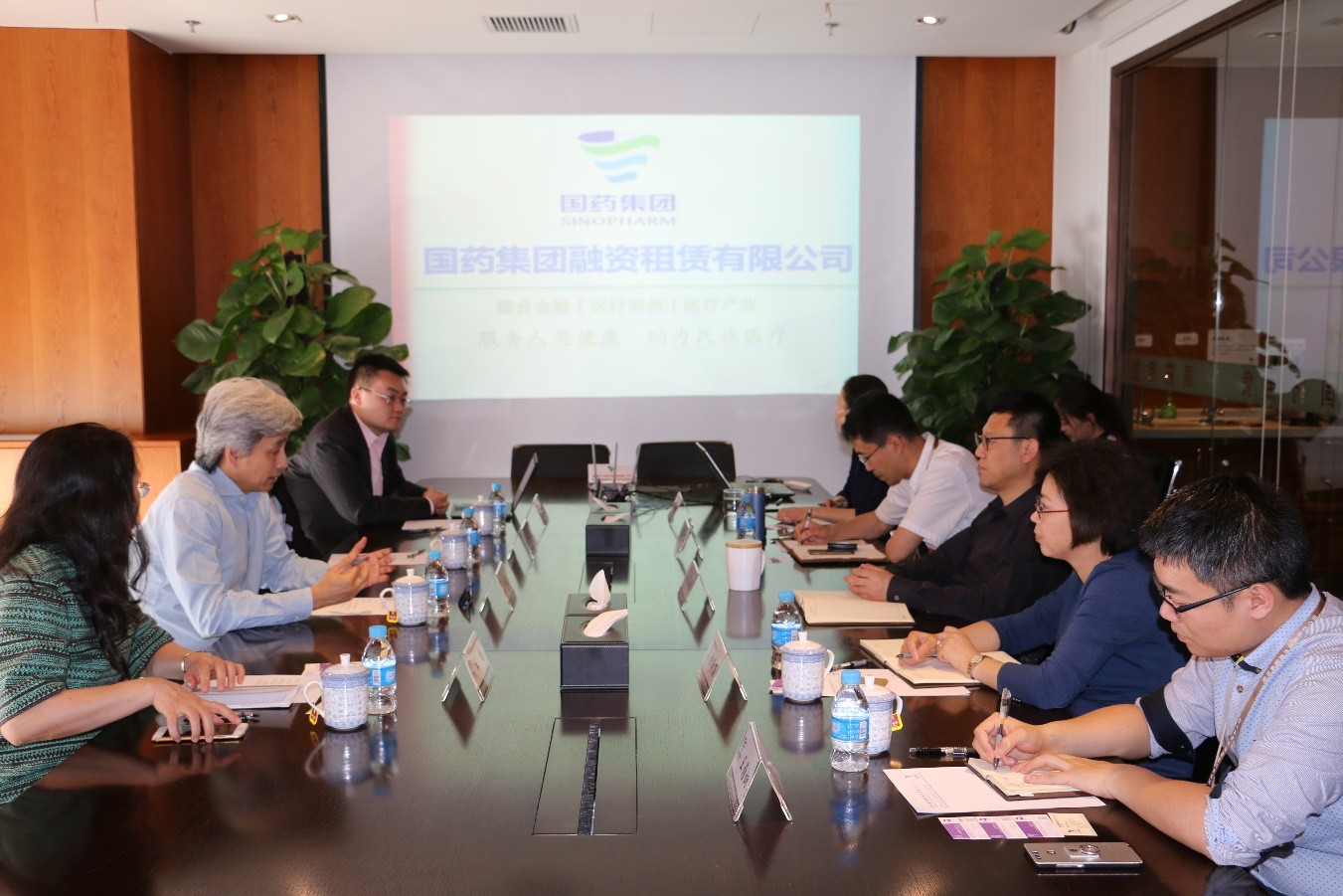 王國梁總裁介紹瞭國藥租賃的曆史沿革、發展前景及合作意向,未來五到六年内,中國資本市場藥品流通行業有一定利潤空間。可通過資本和産業主業並行的方式,用藥品流通利潤投資醫院,希望與康健國際在醫療産業並購、上市以及診所投資進行合作,形成互補。
