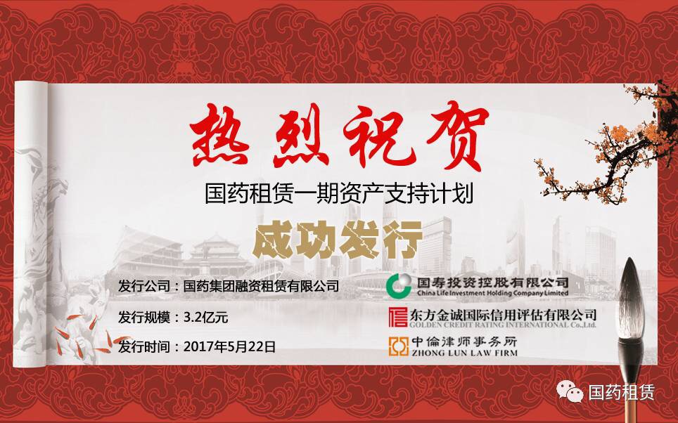 熱烈祝賀國藥租賃(交易所)資産支持專項計劃成功發行