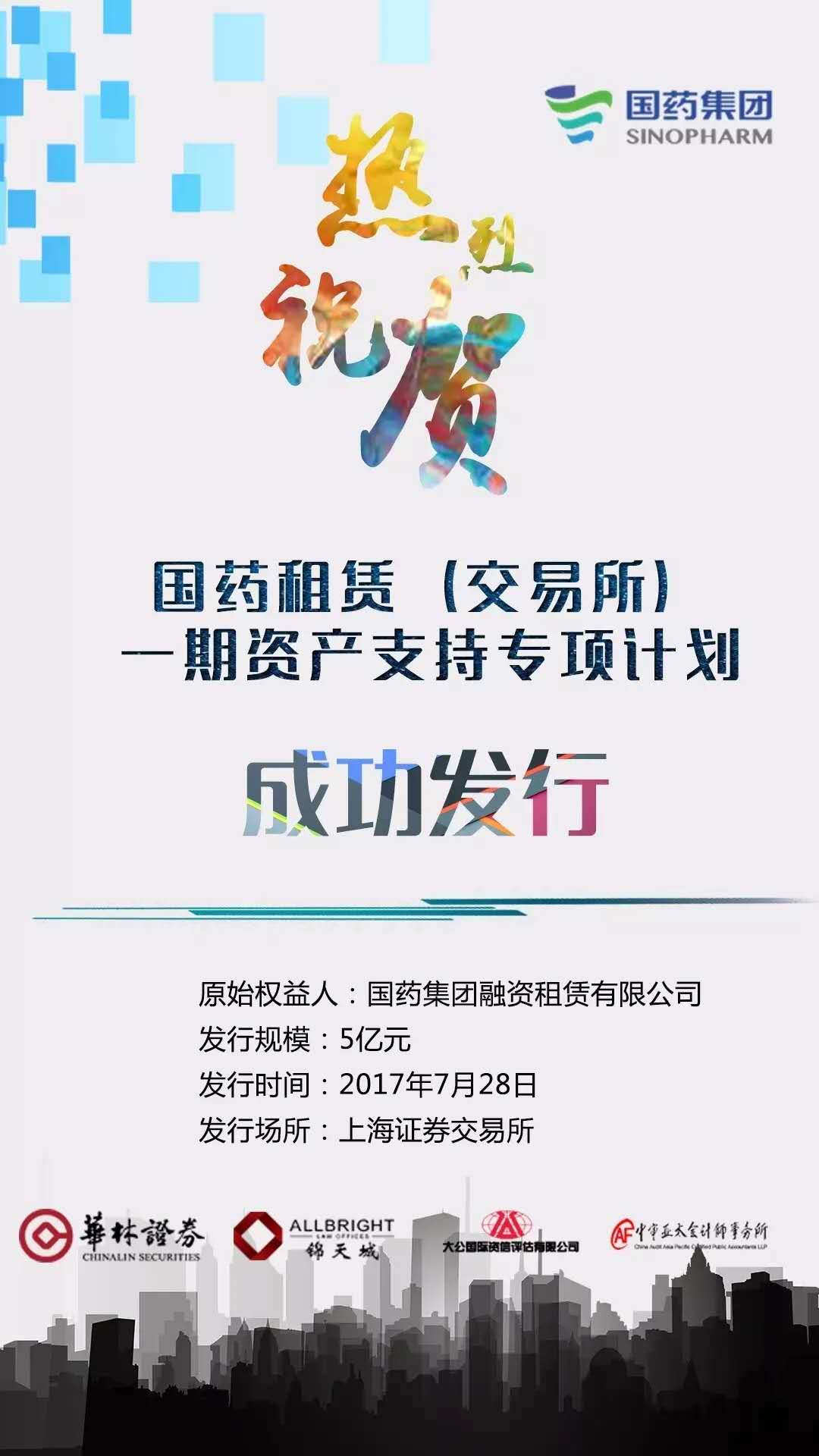 熱烈祝賀國藥租賃一期資産支持專項計劃在上交所正式挂牌