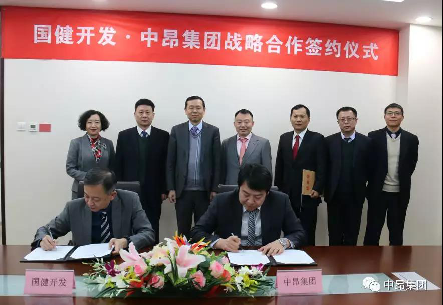 2018年12月7日,中昂集團與國健(廣東)健康城開發有限公司(以下簡稱國健開發)在北京市朝陽區佳程廣場11樓舉行戰略合作簽約儀式。國藥集團融資租賃有限公司副總裁趙星、國健開發總經理陳雨清、北京國健大健康醫院管理有限公司董事長王建國、國健開發副總經理郝瑛,中昂集團董事長易如波、高級副總裁柴濤、華南區域總經理胡浩兵、投資中心副總經理陳雪濤、投資中心副總經理陳濤等出席瞭簽約儀式。陳雨清總經理、柴濤高級副總裁分别代表雙方在協議上簽字。